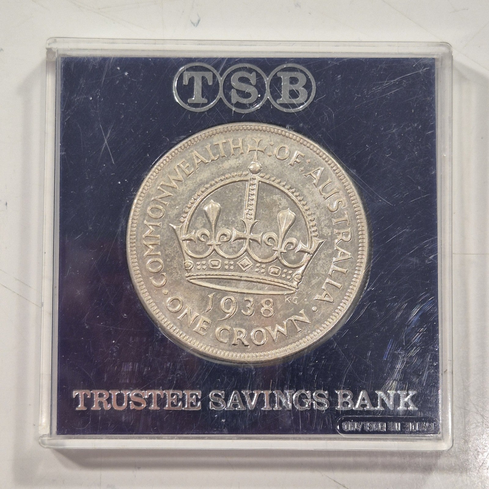 1938 Australia Crown 5/- Five Shillings Silver Coin Trustee Savings Bank Cased