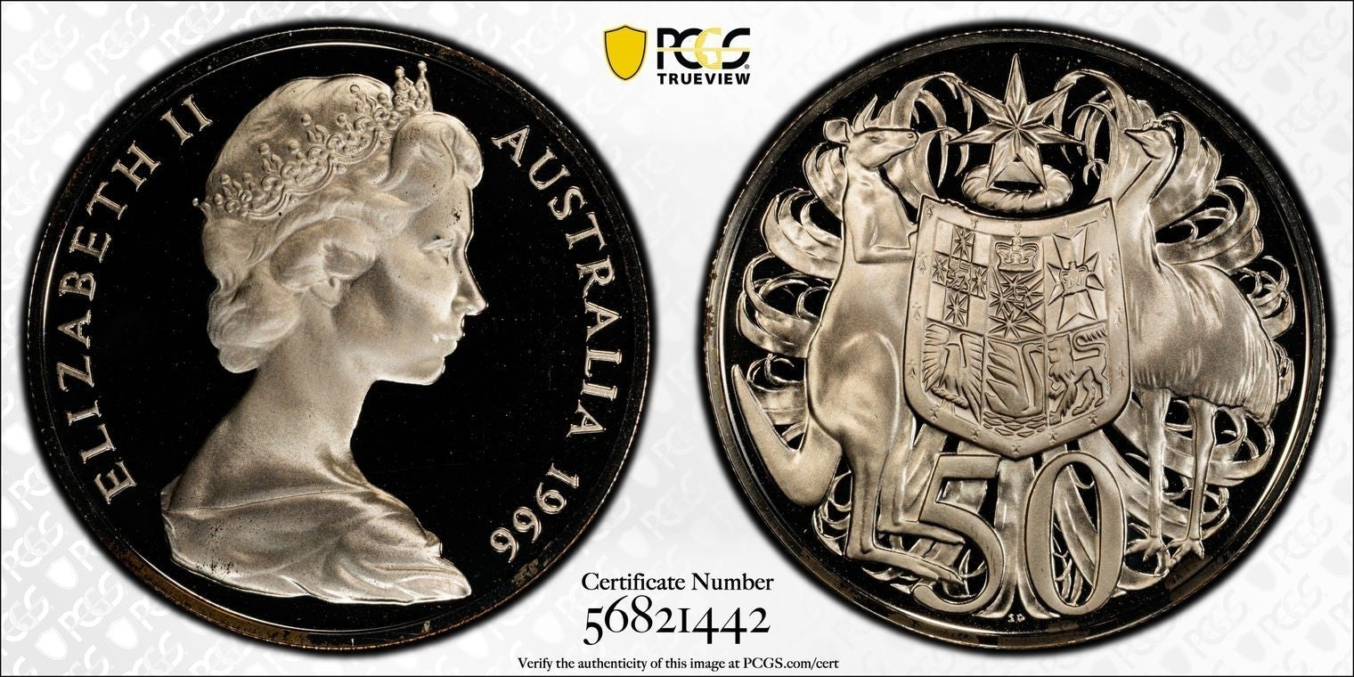 Sourced from Australia and graded PR69DCAM by PCGS, this coin embodies the essence of its era and region of origin. The coin's composition reflects the country's rich history, making it a coveted piece for collectors and enthusiasts of Australian numismatics. Add a touch of silver prestige to your collection with this 1966 fifty cents proof coin.