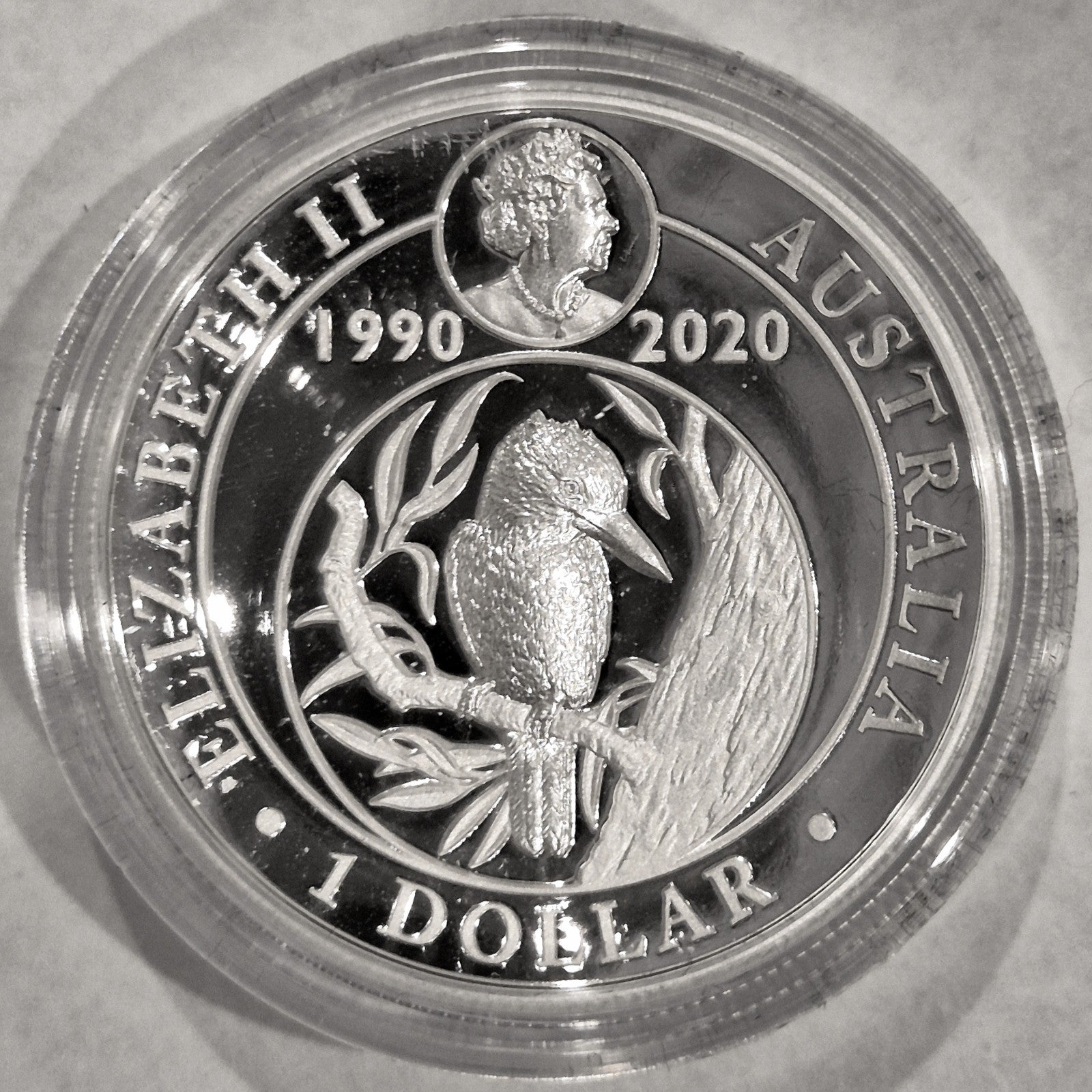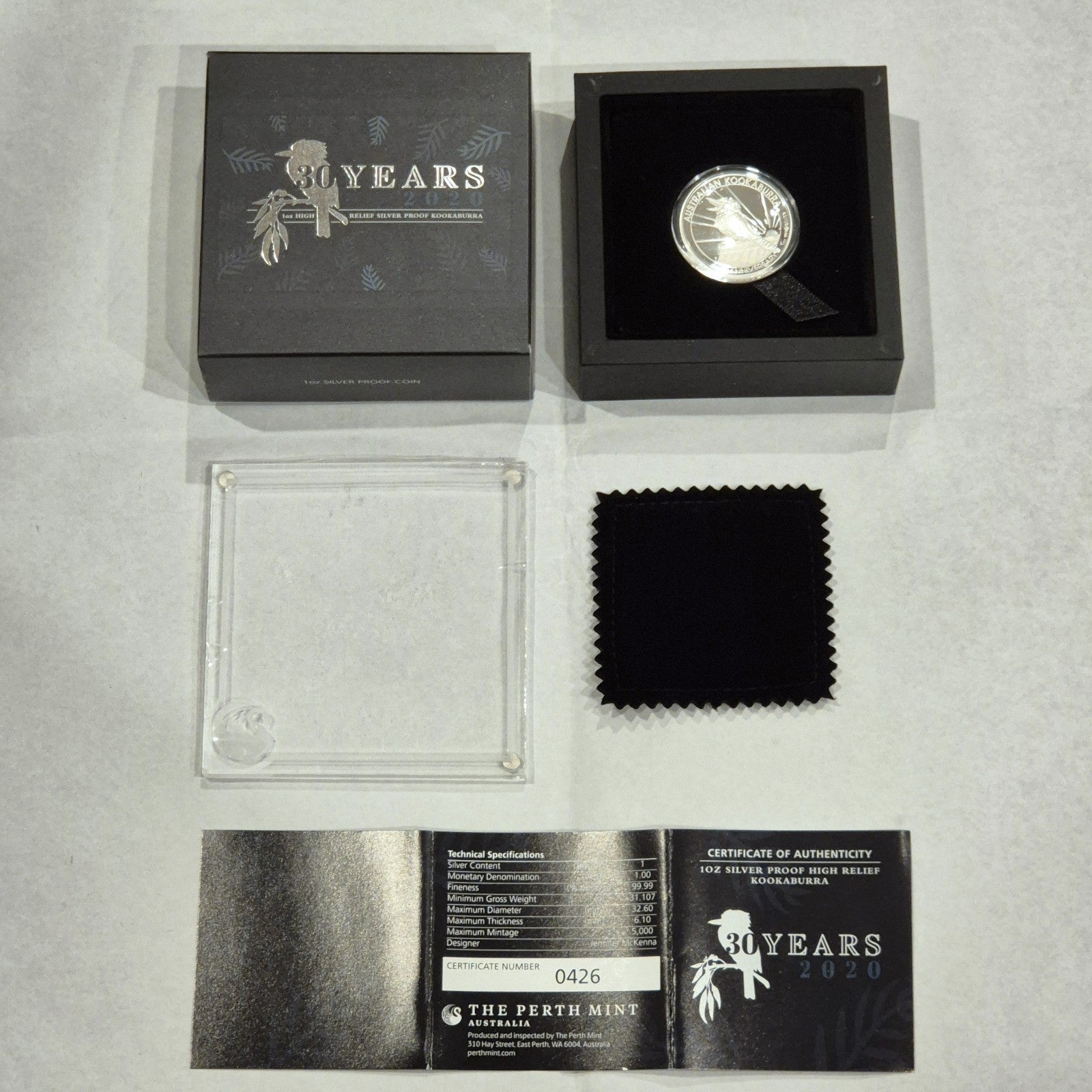 Australia 2020 Kookaburra $1 1oz 30th Anniv High Relief Silver Proof Coin