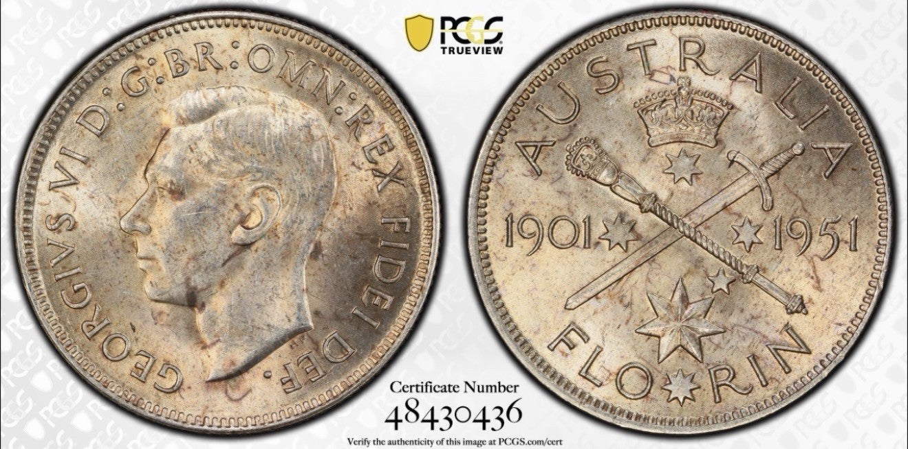 Australia Predecimal 1951 Golden Jubilee 2/- Florin PCGS AU58 with Trueview